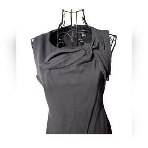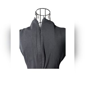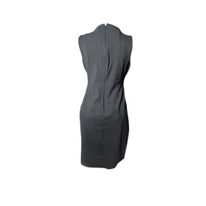 This sophisticated gray sheath dress from Banana Republic features an asymmetrical neckline and pleated details, making it perfect for work or cocktail occasions. The sleeveless design and form-fitting silhouette offer a modern and elegant look, ideal for professional settings.