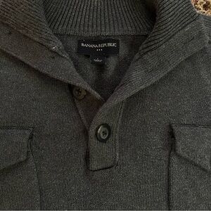 Banana Republic Gray Button Mock Neck Pullover Pocket Sweater Men’s Large