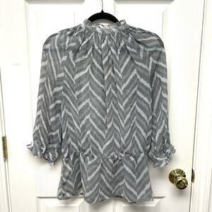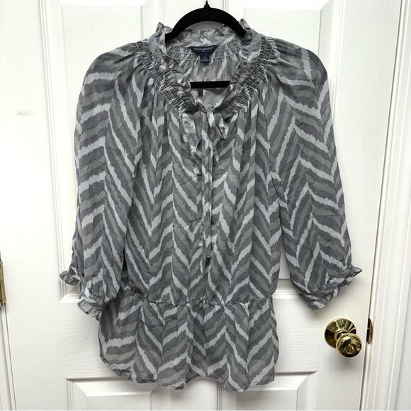 Banana Republic Gray Chevron Sheer Peplum Blouse, 3/4 sleeves, Woman's Size M