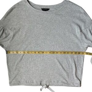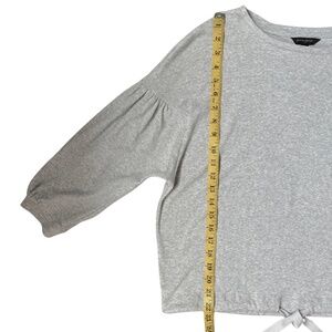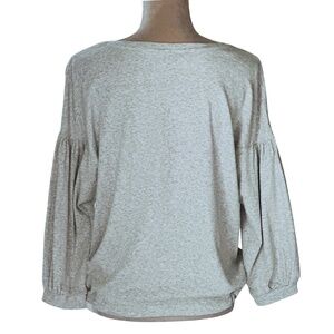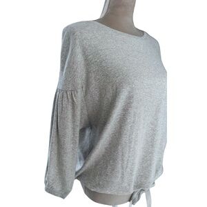 Soft and casual Banana Republic gray knit top with a relaxed silhouette and adjustable tie waist. Voluminous 3/4 sleeves with gathered detail at the shoulder. Perfect for weekend wear or elevated loungewear.