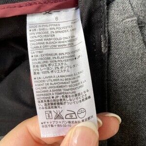 These dress pants are very comfortable and run generously through the pant leg and flare out slightly at the hem. Two pockets in the front and two in the back. Size 6. Excellent used condition.