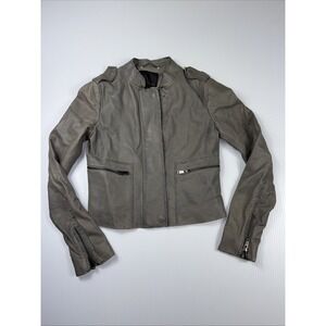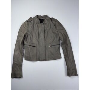 Banana Republic Gray Leather Moto Jacket Women's Sz XXS