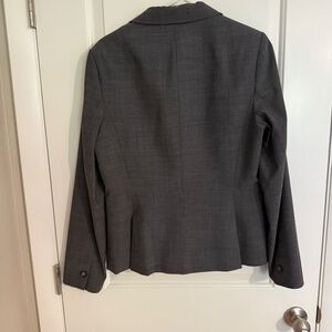Classic and timeless gray tailored blazer from Banana Republic. Features a flattering slim fit, single-button front closure, notched lapel, and flap pockets. Fully lined for comfort and perfect for work, interviews, or professional events.