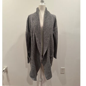 This open front cardigan is made of a heavy material and will keep you warm on those cold fall/winter days/evening. There are 2 front pockets.