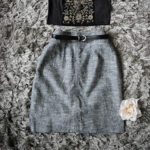 Elegant gray pencil skirt. Sleek and versatile design. Perfect for office or casual wear.