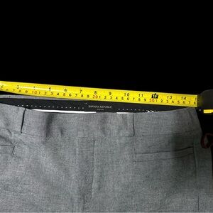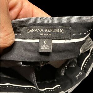 These gray trousers from Banana Republic feature a classic straight-leg design with a slightly tapered ankle for a modern touch. The elastic waistband ensures a comfortable fit, while the soft, textured material offers a relaxed yet stylish appearance. Perfect for casual outings, these trousers combine comfort and elegance effortlessly.