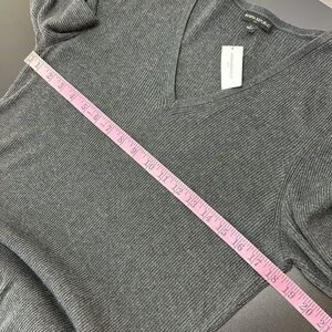 Banana Republic Gray V Neck Ribbed Sweater Midi Dress L Minimalist Classic