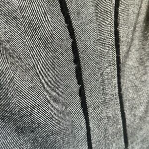 -It is a wool-blend, and knee-length for heights over 5'5.