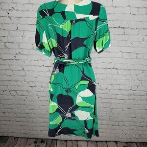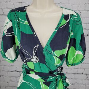 Banana Republic Green 100% Silk Floral Tie Unlined Midi Wrap Dress Size 6