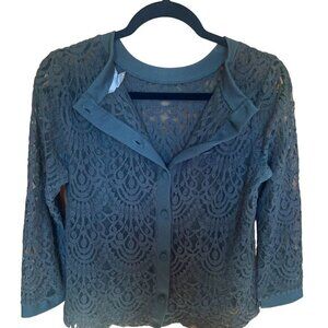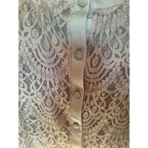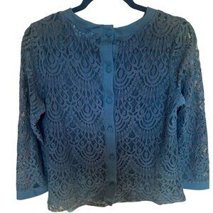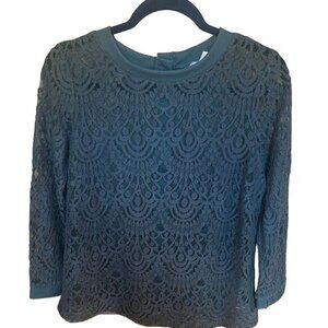 Banana Republic Green Lace Button-Back Long Sleeve Top Medium