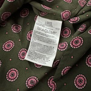 Banana Republic Green Pink Geometric Blouse Ruffles Long Sleeve Sz LP L Petite