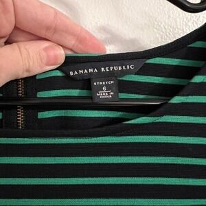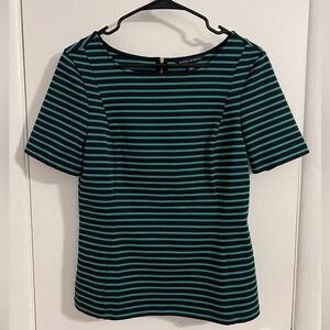Keywords: Banana Republic, striped top, work top, career top, green top, black top, size 6, short sleeve, stretch top, casual top, classic, business casual