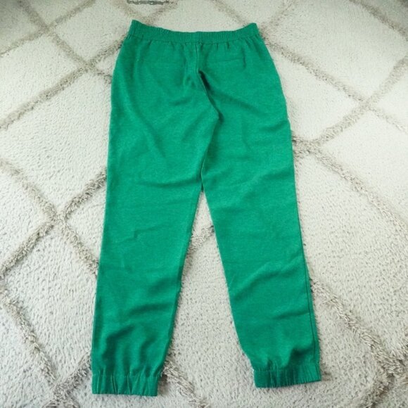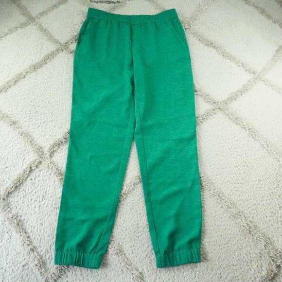 Comfortable green track pants. Elastic waistband and cuffs. Perfect for casual wear.