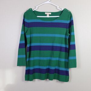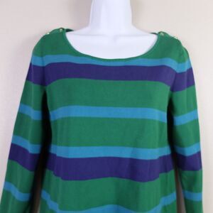 Banana Republic Green and Blue Striped Shoulder Button Sweater Blouse Size M