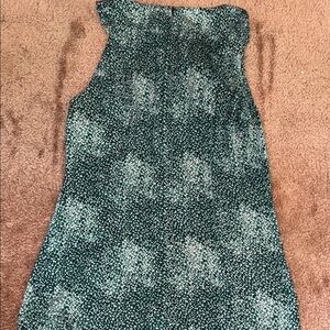 Chic sleeveless blouse with a teal and white design. Perfect for versatile styling.