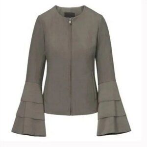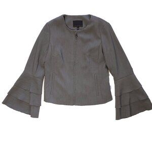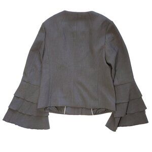 Banana Republic Grey Tier Ruddle Sleeve Editorial Y2k Blazer jacket size 0. NWT new with tags. This is a Y2k style blazer with Tiered ruffle sleeves that has a Flamenco dance style. it is neutral and perfect for any bohemian outfit or business casual style.