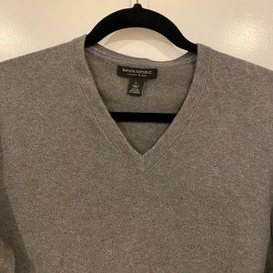 Banana Republic Grey V-Neck Sweater Size Men's Large 75% silk; 20% cotton; 5% cashmere. Only dry cleaned. In excellent pre-worn condition.
