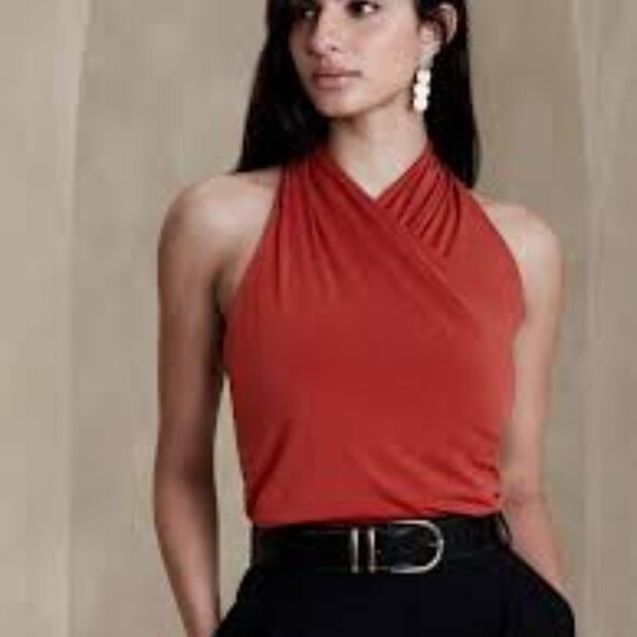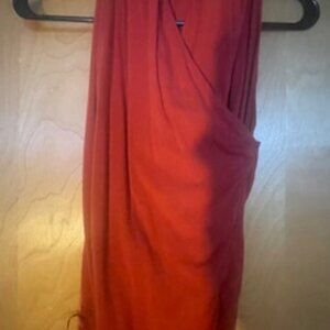 Red (garnet shade) halter top. XXS. Can be worn on its own or with a jacket/sweater. Good condition, light wear.