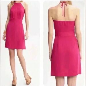 Banana Republic Halter Mini Dress 8P Pink Pleated Bodice Open Back
