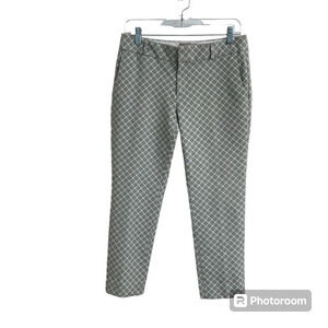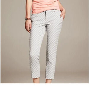 Banana Republic Hampton Pant Women 4P Gray White Geometric Print Crop Dress Pant