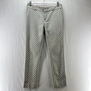 Banana Republic Hampton Pants Womens 0 Mid-Rise Argyle Print Stretch Ankle Gray