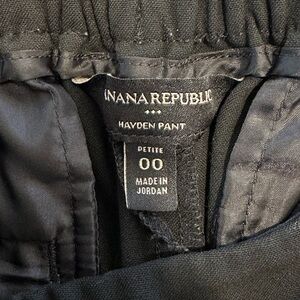 Banana Republic petite pants, Hayden petite trousers, black ankle pants, women’s work pants, stretch career slacks, petite black trousers, slim ankle dress pants, Banana Republic Factory pants, mid rise petite pants, tailored petite trousers, professional office wear, polished black slacks, business casual wardrobe, comfortable work trousers, petite capsule wardrobe, elevated basics pants, travel-friendly black pants, Banana Republic 00P trousers, timeless black dress pants