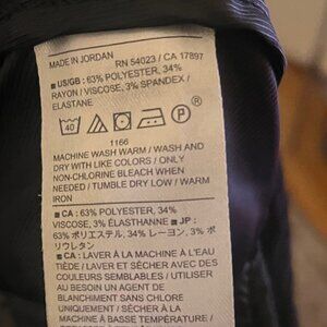 63% recycled polyester, 34% rayon, 3% elastane.