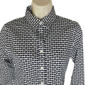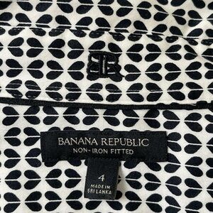Banana Republic Heart Long Sleeve Button-Down Shirt 4 Black White Non Iron Fit