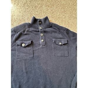 Very Attractive Banana Republic Cotton Henley Sweater. 2 Front pockets. Navy Blue. 100% Cotton. Breathable. Size Mens Large. In Very good condition.