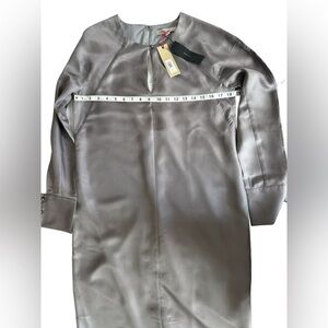 Banana Republic Heritage 100% Silk Sheath Dress Luxe Gray Seamed Midi Sz S NWT