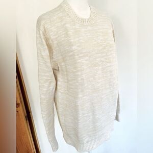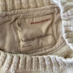 Banana Republic Heritage Collection 100% cotton crew neck sweater size M. Colors are light tan and white. Banded collar, cuffs, bottom hem.