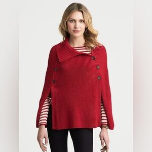 Banana Republic Heritage Double Breast Wool Blend Red Chunky Knit Cape Size XS/S