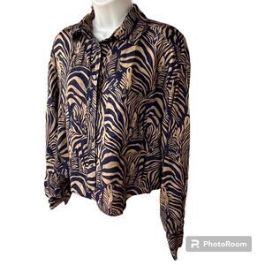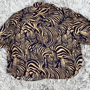 Banana Republic Heritage Expedition Zebra Print Button Down Top Linen Womens S