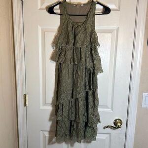 Banana Republic Heritage Green Tiered Lace Dress, Size 10