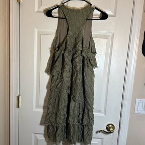 Banana Republic Heritage tiered taupe lace dress.