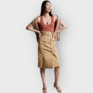Banana Republic Heritage Pencil Midi Skirt Tall 0 Khaki Paperbag Waist Belted