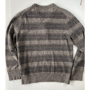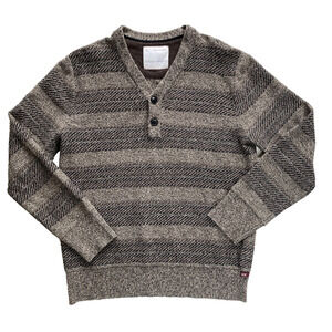 Banana Republic Heritage Collection Sweater Men's Size Medium Preppy Brown / Cream Merino Wool Blend Stripe Popover. Good used condition. No rips or stains. Fabric shows normal signs of wear. Extra button sewn inside tag.