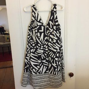 Super comfy sleeveless cotton sundress with tie-waist belt and POCKETS. Runs large, size 4 fits busty 6-8 with room to spare. Lined with white cotton layer. Hits above the knee on 5' 7". The perfect summer sundress to dress up or down!