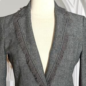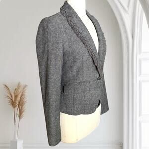 Banana Republic Herringbone Wool Blend Blazer Jacket Ruffled Trim Grey Size 4 Women's