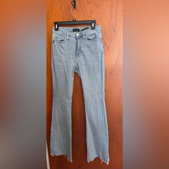 The cutest Banana Republic light blue high rise flares! Great shape, the jeans are stretchy and forgiving, the high rise is a great look and the fray at the bottom of the jeans are a great look! Size 26 but could be a 30 and still wear these. Super cute