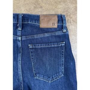 These Banana Republic women’s jeans feature a flattering high-rise fit with a cropped bootcut leg, crafted in a dark wash stretch denim. Designed for both comfort and structure, they include classic five-pocket styling, a zip fly with button closure, and a raw hem for a modern finish.