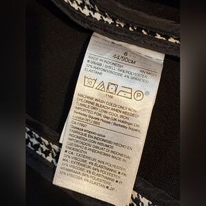 Add timeless polish to your wardrobe with this Banana Republic black and white houndstooth blazer, size 6. Featuring a classic notched collar and tailored silhouette, this single-button jacket blends sophistication and versatility for effortless styling. The premium woven fabric offers comfortable stretch with a composition of 64% polyester, 32% rayon, and 4% spandex, making it perfect for both professional settings and elevated casual wear.