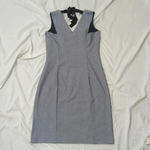 Banana Republic Houndstooth Check Tie-Back Sheath Dress, Color Blue/White Size 6