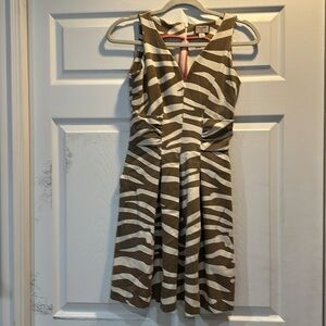Gently worn Banana Republic Issa London Ruched Zebra Shift dress women’s size 0. Stretch knit material, tan and cream zebra print, v-neckline, ruched at waist, pleated skirt, hip pockets, hits above knee, hidden rear zipper. Offers accepted!