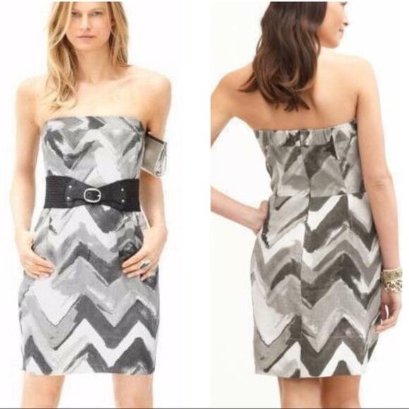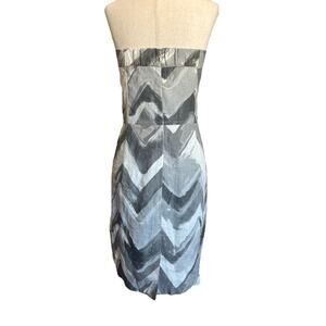 Banana Republic Italian LINEN Grey Gray Chevron Strapless Dress Boning 10