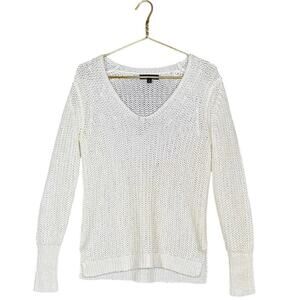 Banana Republic Italian Linen Open Knit Sweater Top | Cream Lightweight Boho | M