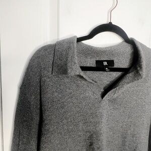 Banana Republic Italian Merino Sweater Polo Johnny Collar Grey
