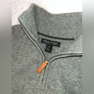 Banana Republic Italian Wool Blend Quarter Zip Heather Green Sweater Mens Medium