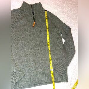 Only worn a few times, in great condition! Rich look and feel in a super soft and comfortable Heather Green Italian Wool sweater. Leather zipper pull.