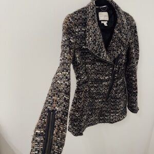 Banana Republic textured tweed moto style coat.
